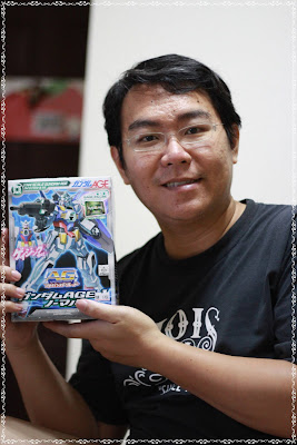 這就是你的第一份禮物, robot 模形 (sorry, mama 不知道這個鐵人的名字).爸爸第二天很認真, 很努力, 很細心的拼裝著你的鐵人模型.